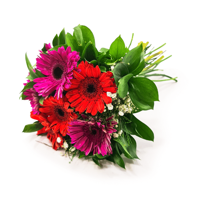 As gérberas significam a positividade, energia da natureza, alegria e vivacidade e são um ótimo presente para alegrar a pessoa presenteada em diversas situações. Esse buquet com 10 unidades é alegre e contrastante para trazer muita vivacidade.