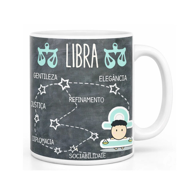 Caneca exclusiva do signo de Libra com as principais características, a constelação e o símbolo do signo para você surpreender!
