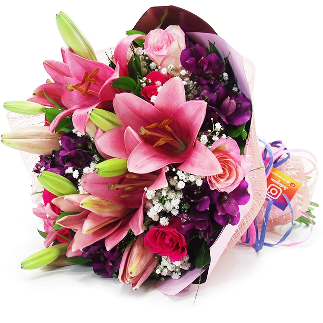 Lírios Rosa: Rosas e Alstroemérias - M